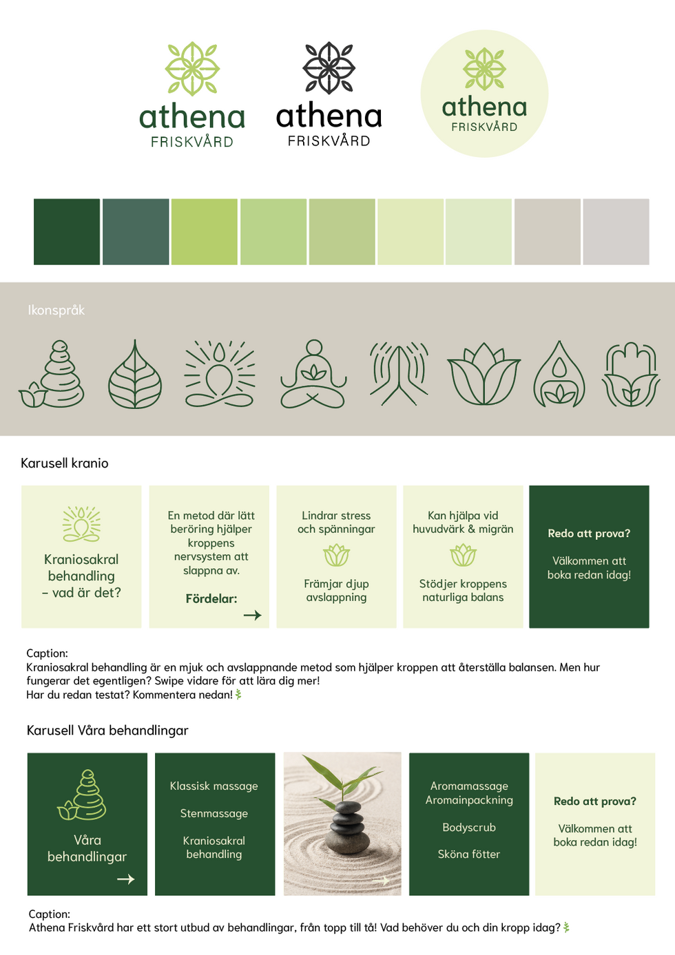 Ny logotyp, profil, web och sociala medier för Athena Friskvård.
